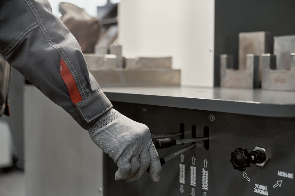 Hydraulic press with 3 working cylinders and clamping action |